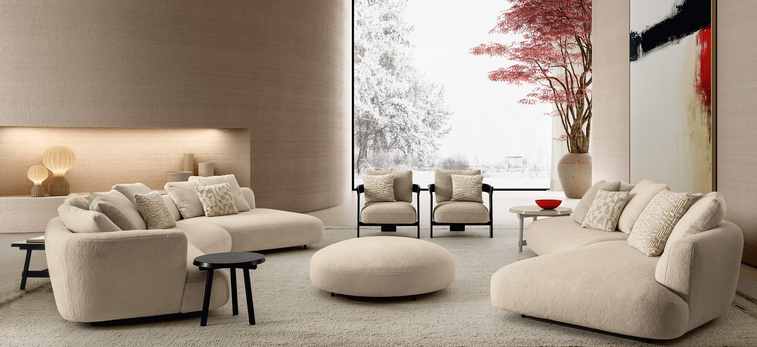 ALMA posee una naturaleza y una estética fuertemente polarizantes: sutiles referencias a volúmenes del pasado reciente se funden con una visión de diseño contemporánea, generando un equilibrio inédito entre memoria y modernidad. El resultado es un sofá que no se limita a amueblar, sino que se convierte en una presencia viva, expresión de un confort sensorial y de un diseño profundamente emocional.