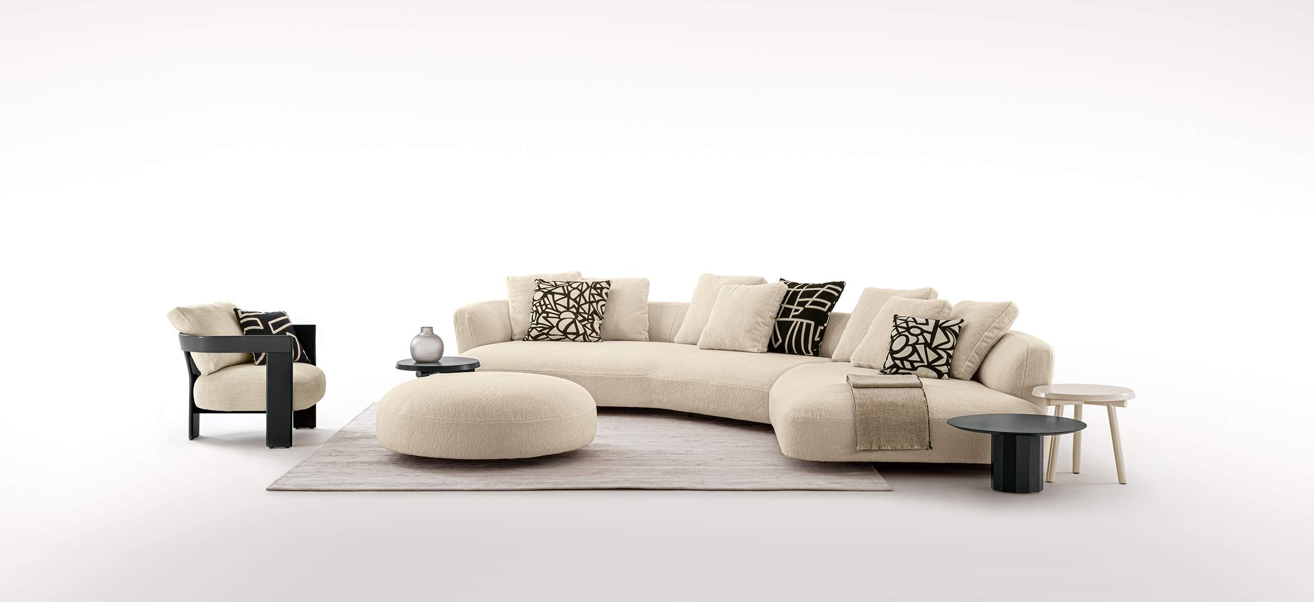 Alma nace como un proyecto que va más allá de la simple función de habitar. Su nombre, que en español significa alma, revela desde el inicio la esencia de una colección capaz de transmitir emoción, ritmo y carácter. Las formas escultóricas, definidas por curvas continuas y ángulos esquivos, se mueven en el espacio con la misma musicalidad del idioma del que toman su nombre, dando lugar a un lenguaje visual suave y dinámico.