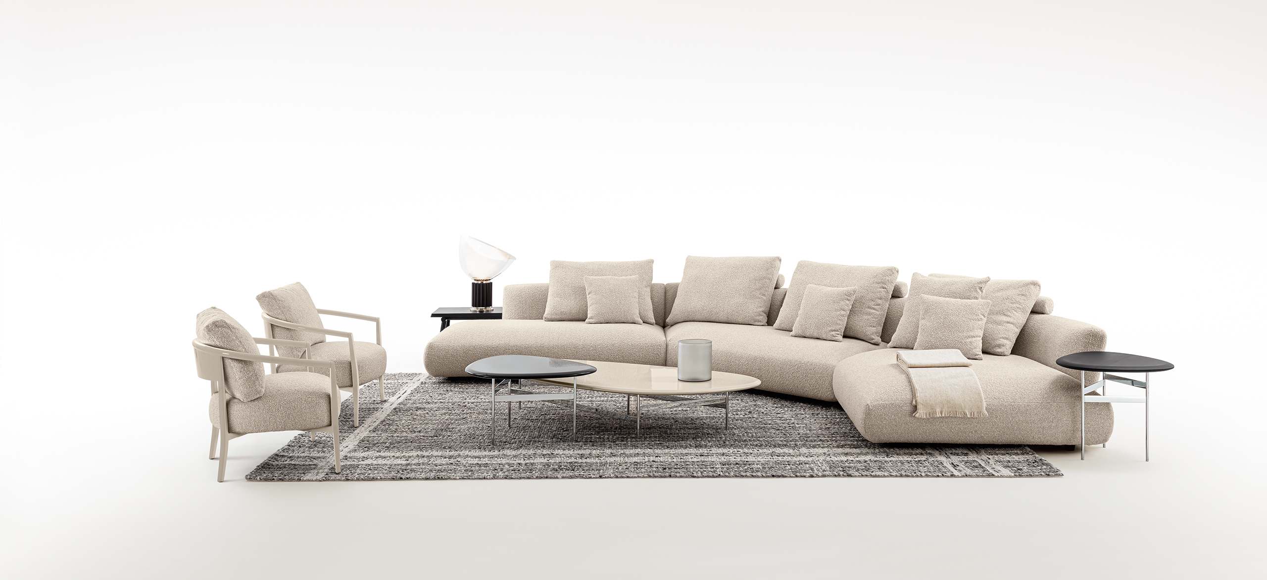 La colección TAMASHI nace de una visión de rigor y armonía, inspirada en la tradición japonesa más clásica, donde cada gesto de diseño es esencial y lleno de significado. Su nombre, que en japonés remite al espíritu y al alma, expresa un lenguaje formal silencioso pero profundo, capaz de transmitir equilibrio y serenidad. TAMASHI es un tapizado a ras de suelo, disponible tanto como monobloque como en configuraciones modulares, pensado para adaptarse de manera natural al espacio. La inclinación hacia el exterior de los cojines de respaldo y reposabrazos aligera el volumen y aporta una presencia elegante y contemporánea. Un proyecto sobrio y medido, que combina disciplina formal y confort, ideal también para espacios de dimensiones más reducidas.