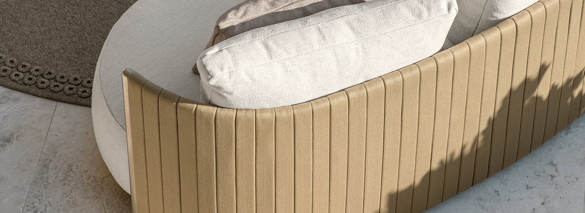 Doble trenza fabricada con un núcleo de goma y una cubierta de olefina multifilamento, resistente a los rayos UV.