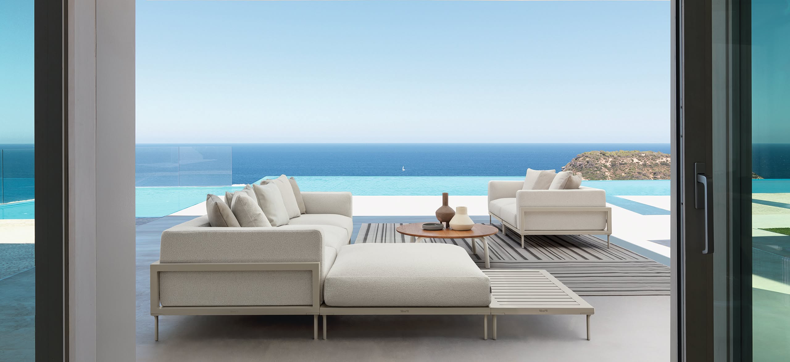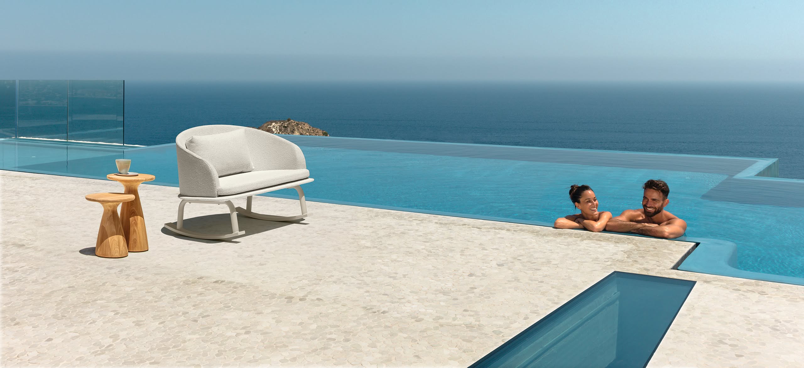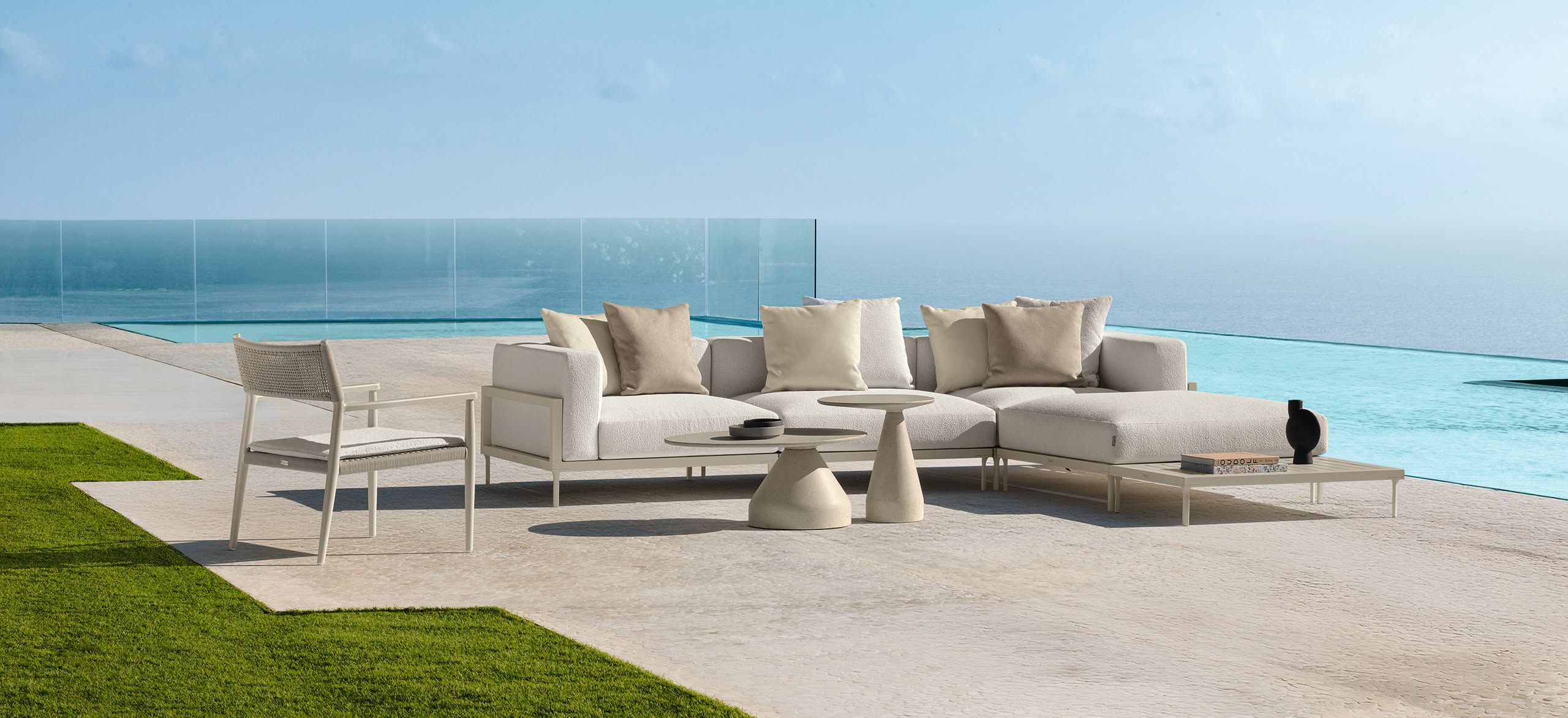 El hilo conductor de la colección Cleo Alu es la creación de un producto joven y dinámico, capaz de implicar emocionalmente al observador. La percepción visual llega directamente a los sentidos, involucrándolos. Una colección nacida del deseo de experimentar con un juego de contrastes y combinaciones inusuales de materiales: la ligereza del aluminio, la modernidad de las superficies de hormigón aligeradas y la sorprendente elegancia de los revestimientos textiles se combinan para crear una línea que se adapta perfectamente a cualquier estilo y espacio exterior. Los colores vivos y la profundidad de los asientos contribuyen a crear un buen estado de ánimo y a al relax. Una colección chic y trendy, con un aire alegre y fresco, pensada para un público joven y juvenil.