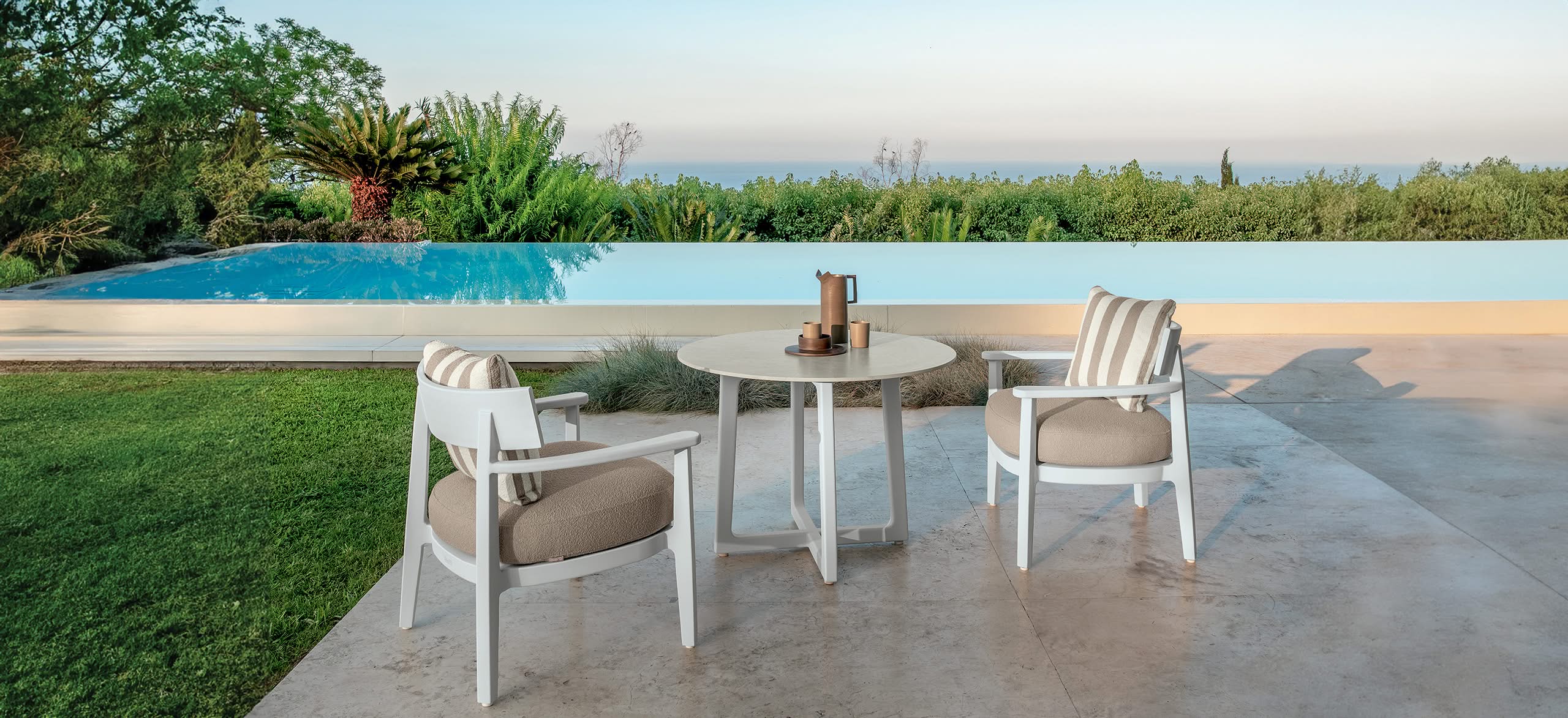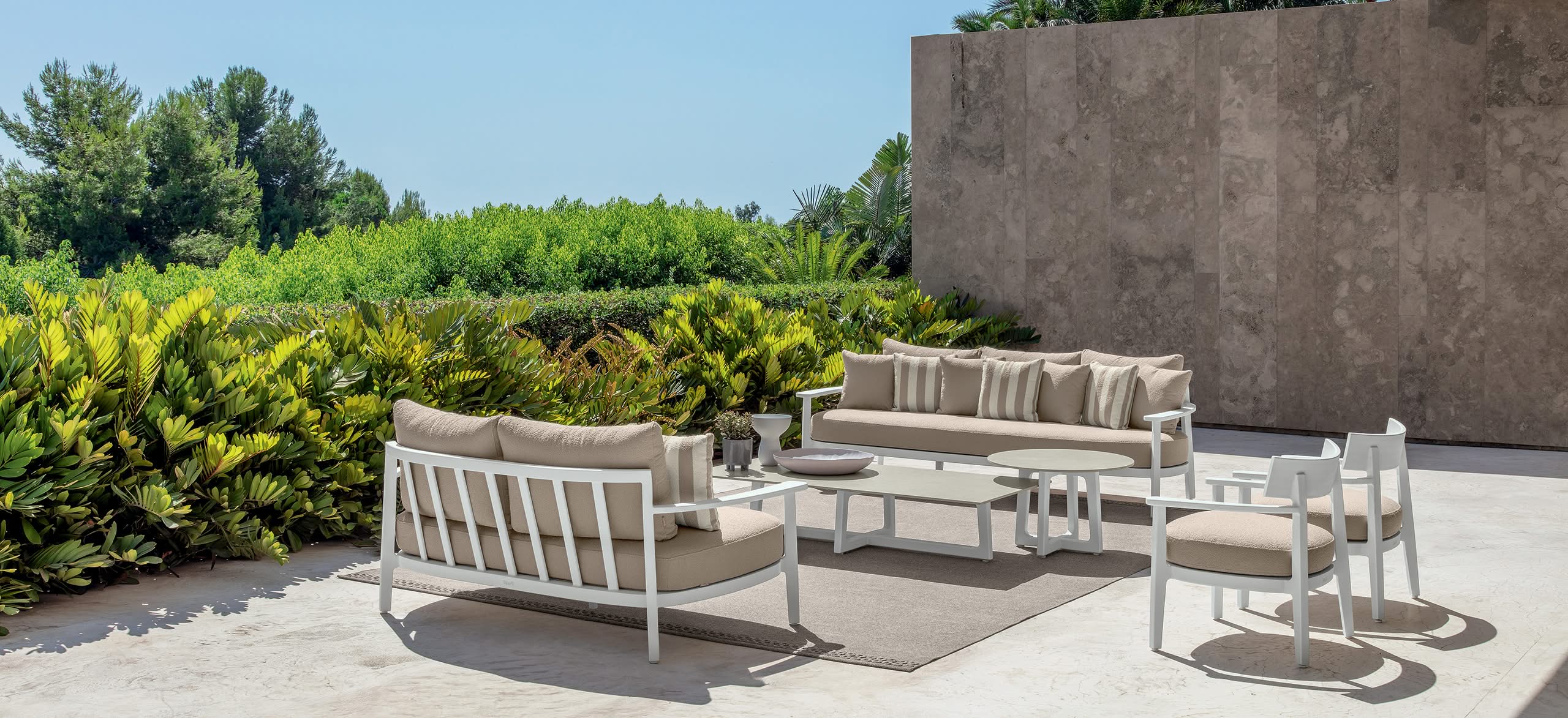 Como su nombre indica, Ever es la colección creada por Christophe Pillet, maestro de la elegancia atemporal, concebida para resistir el paso de las tendencias y adaptarse a distintos entornos y épocas sin perder su esencia. Las líneas esenciales y la ligereza del aluminio dan forma a piezas de mobiliario “evergreen” que miran al futuro del diseño exterior, inspirándose en los grandes clásicos del pasado. Composiciones ligeras y versátiles, en formas y colores, con tonos neutros inspirados en la naturaleza, símbolo por excelencia de equilibrio y durabilidad.