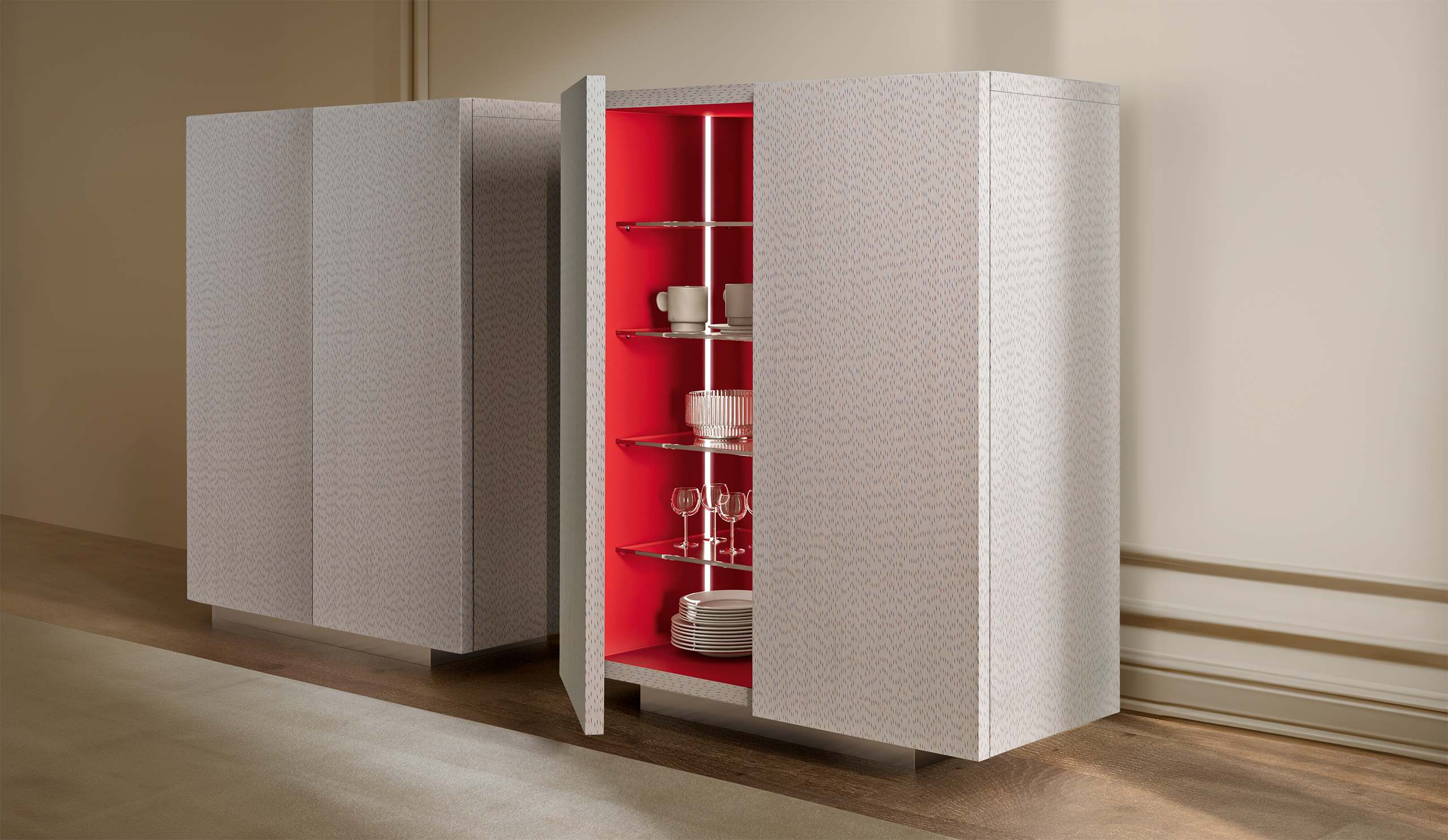 El cabinet BESSIE interpreta el mueble contenedor como un elemento de diseño esencial y refinado, combinando funcionalidad e investigación material. El basamento de madera con marco de acero aporta solidez estructural y ligereza visual. La estructura, disponible en acabado lacado o chapado, realza las superficies con un lenguaje contemporáneo. Los apoyos en polímero termoplástico garantizan estabilidad y protección. Las finituras en metal, lacado o chapado permiten una amplia personalización, convirtiendo a BESSIE en un cabinet versátil y sofisticado para interiores modernos.