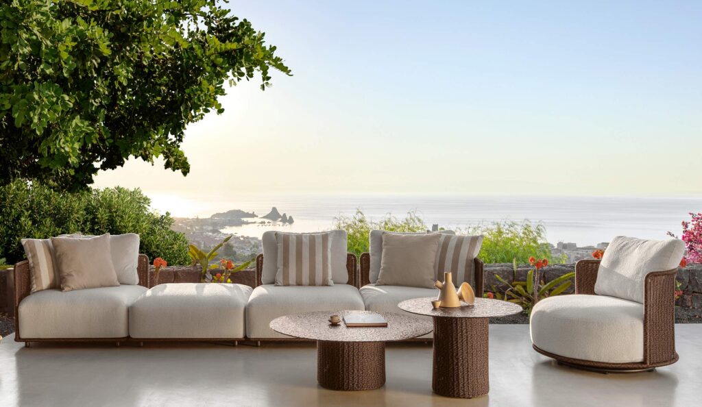 La mesa de café pequeña Bond está pensada como un complemento versátil y refinado, capaz de acompañar con discreción cualquier configuración del living. La estructura cilíndrica en mimbre trenzado, ligera y resistente, sostiene un sobre de vidrio texturizado con matices cálidos y sofisticados. Su tamaño compacto la hace ideal como superficie funcional, manteniendo al mismo tiempo un carácter escultórico que remite a la estética de la colección. Un detalle precioso que enriquece la experiencia del outdoor living.