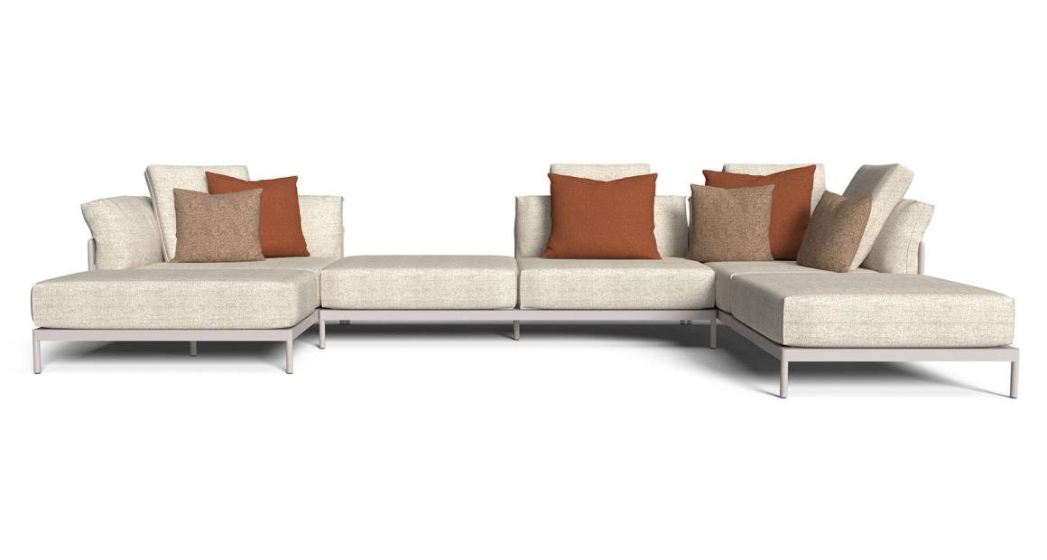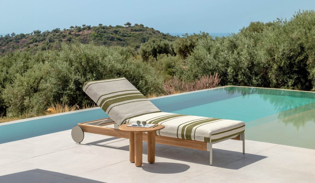 La tumbona es el emblema del relax al aire libre, donde materiales y formas trabajan en conjunto para garantizar un confort absoluto. La estructura de aluminio asegura ligereza y resistencia, mientras que los detalles en teca aportan calidez y naturalidad. El revestimiento en tejidos técnicos y refinados, unido a líneas suaves y fluidas, acompaña momentos de tranquilidad y regeneración. Perfecta junto a la piscina o en la terraza, transforma el exterior en un oasis privado de bienestar y elegancia.