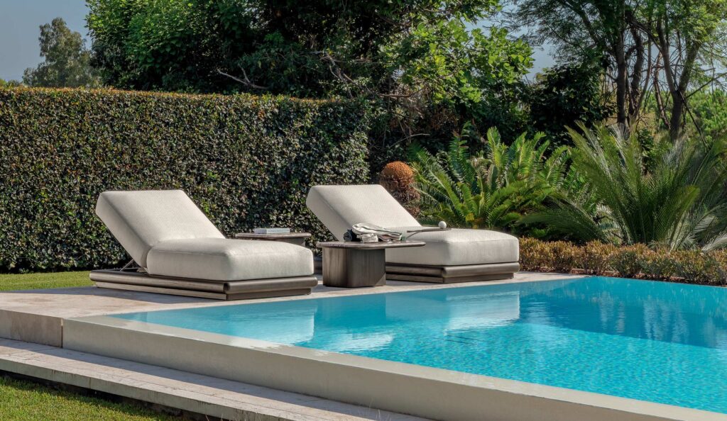 La tumbona Itaca se caracteriza por los perfiles redondeados de las bases en Accoya® de teca natural o palisandro y el mecanismo semia-utomático que lo convierte en un artículo perfecto tanto para uso residencial como contract.