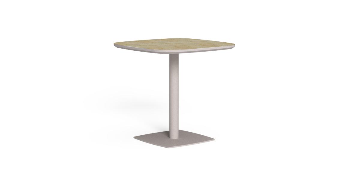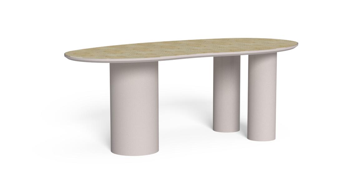 Su estructura de aluminio pintado sostiene un tablero circular de proporciones armoniosas, donde la pureza del diseño se encuentra con la fuerza del material.