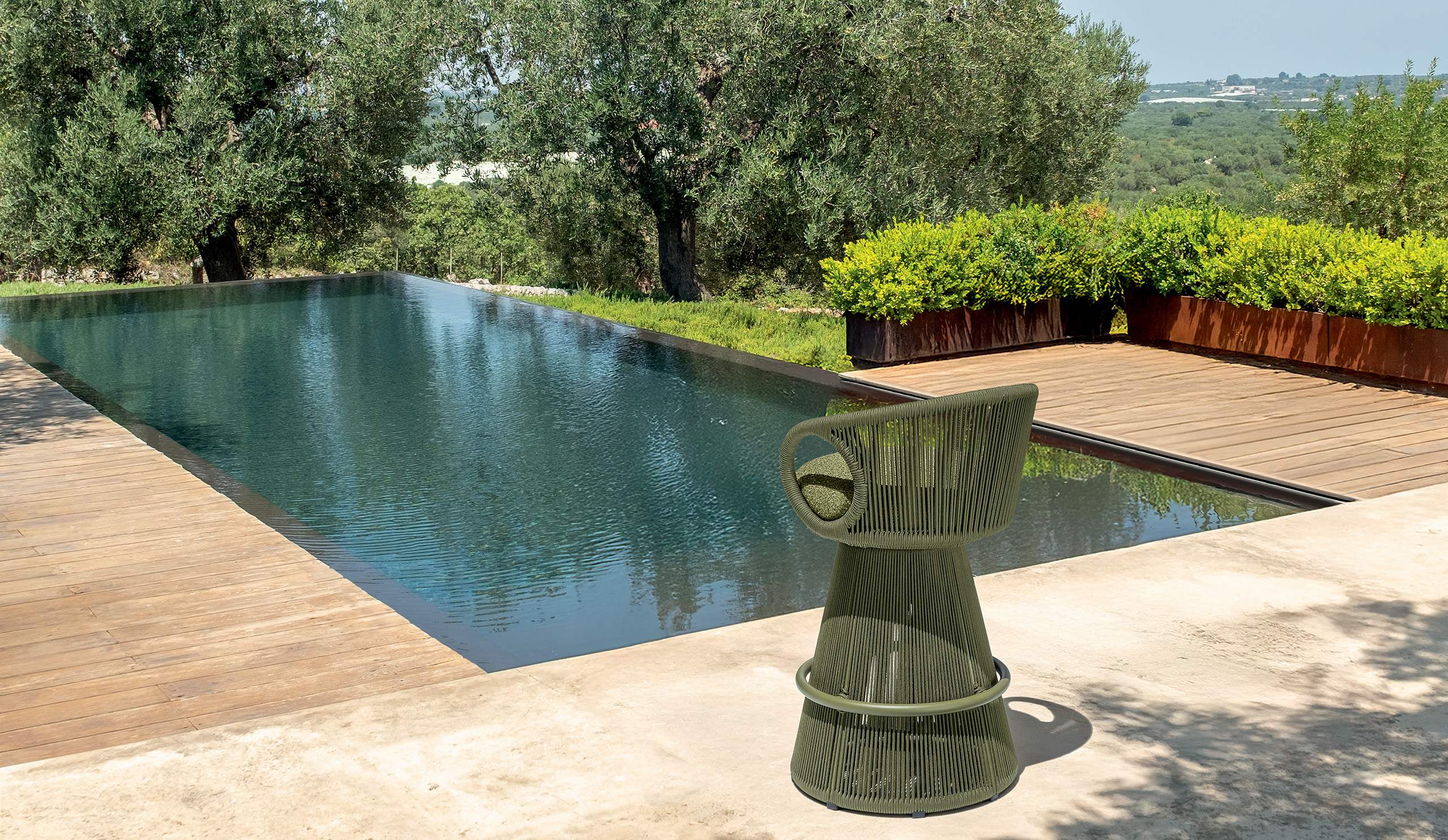 El taburete giratorio Karen es un elemento de decoración que combina diseño contemporáneo y funcionalidad. Su estructura presenta una base cónica recubierta de cuerdas que ofrecen estabilidad y un toque de elegancia, mientras que el asiento acolchado y el respaldo curvo garantizan un confort óptimo. El taburete está revestido con tela de alta calidad y su diseño ergonómico está pensado para ofrecer apoyo durante las comidas.