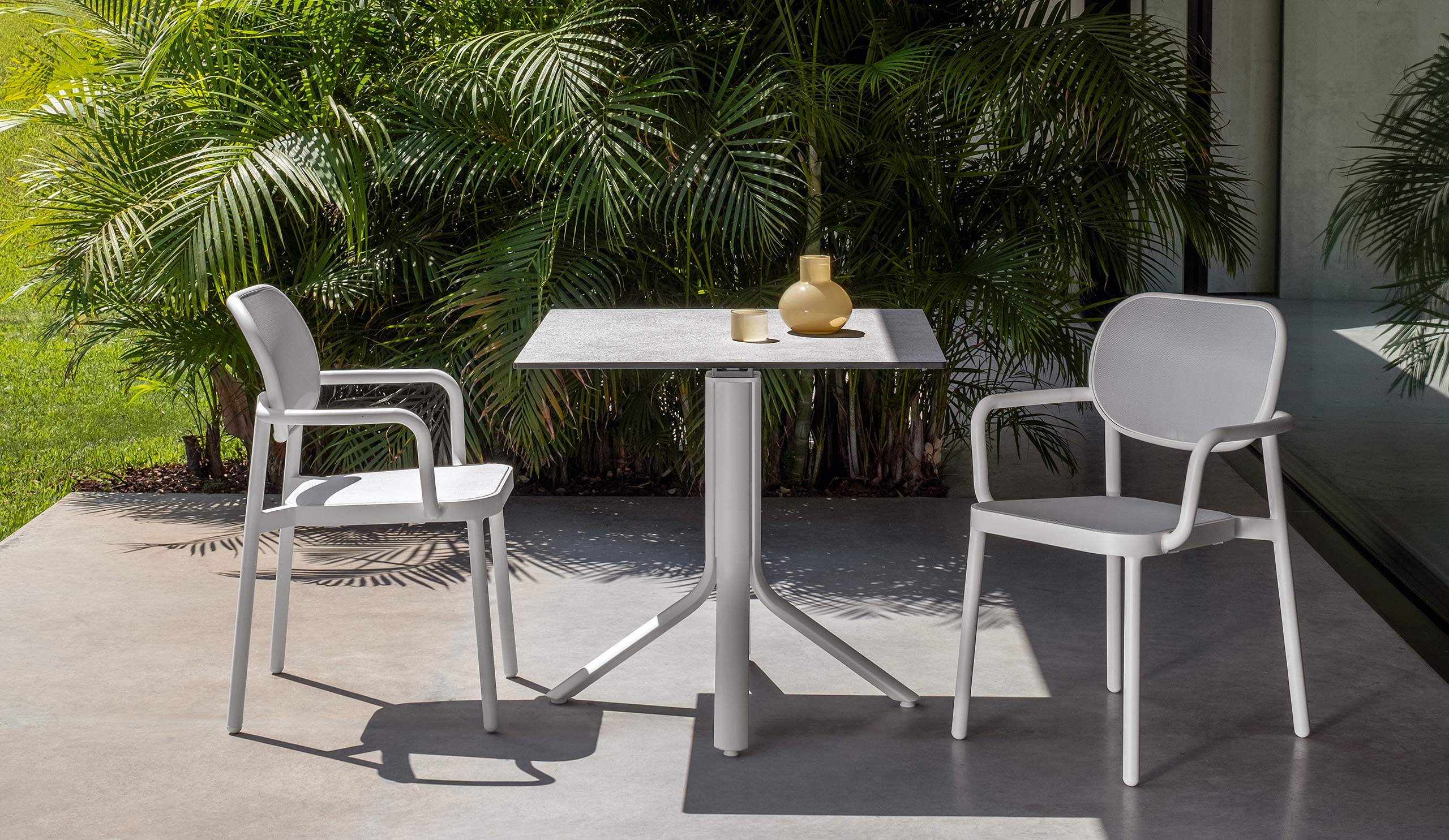 Los reposabrazos integrados aumentan el confort, mientras que su diseño equilibrado y refinado lo hace ideal para terrazas y jardines de estilo contemporáneo.