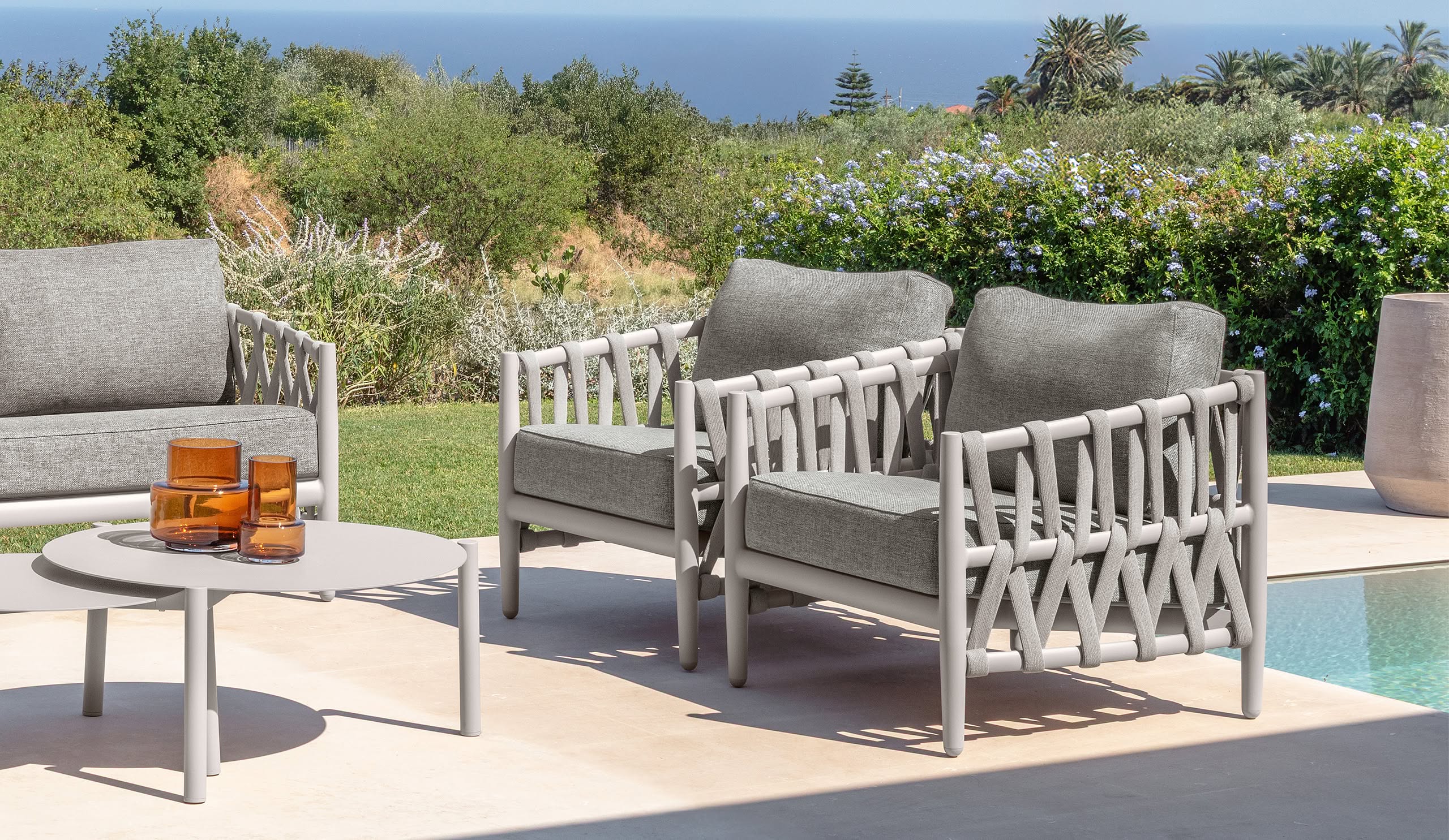 Una pieza de mobiliario con carácter fuerte pero equilibrado, capaz de realzar cualquier ambiente exterior con personalidad y estilo.